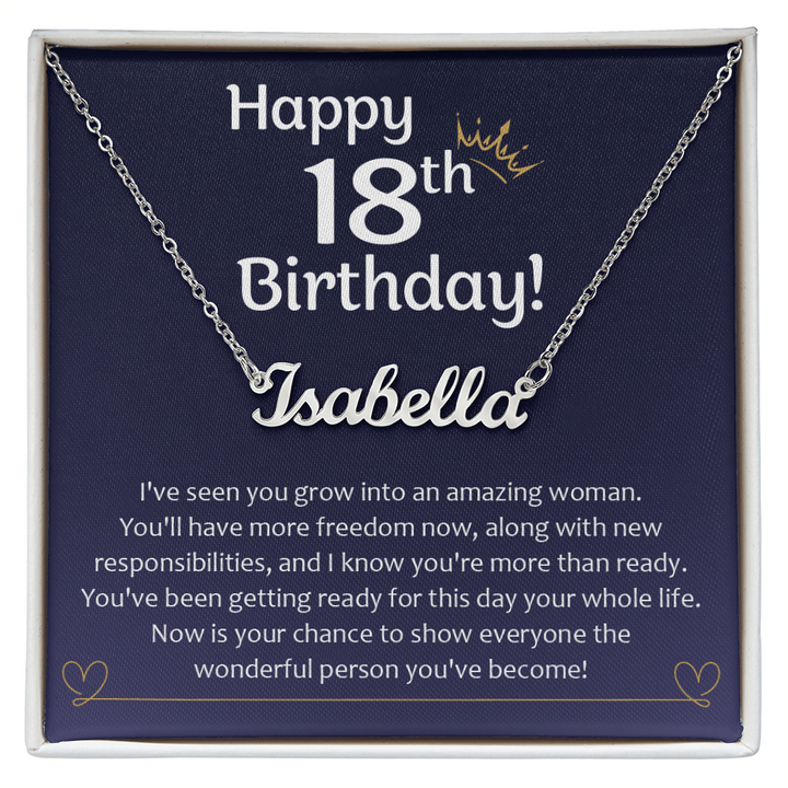 Create a lasting impression in your 18th birthday with a Custom Name Necklace. Choose your name or a loved one’s – made with love, style, and personalization.