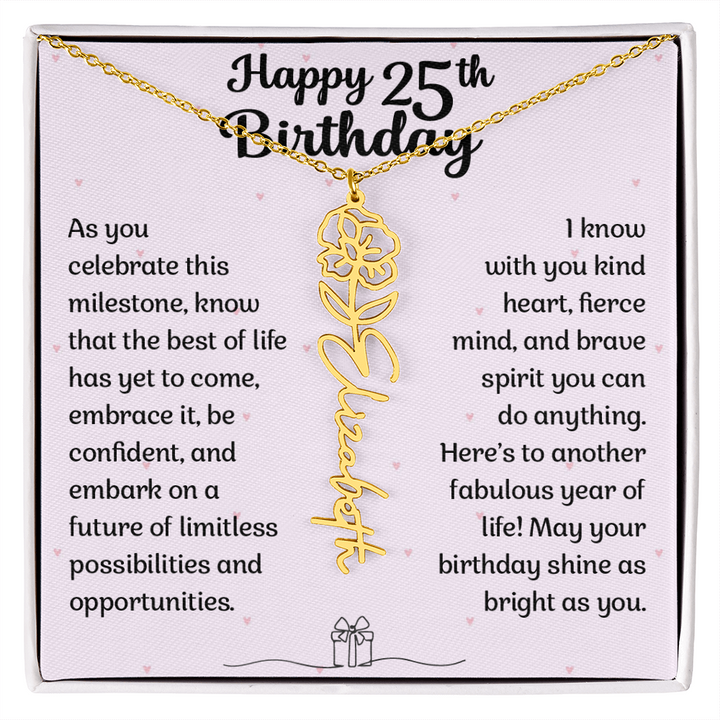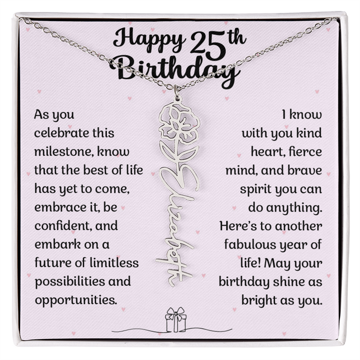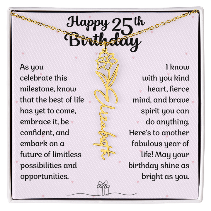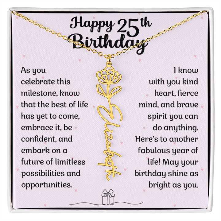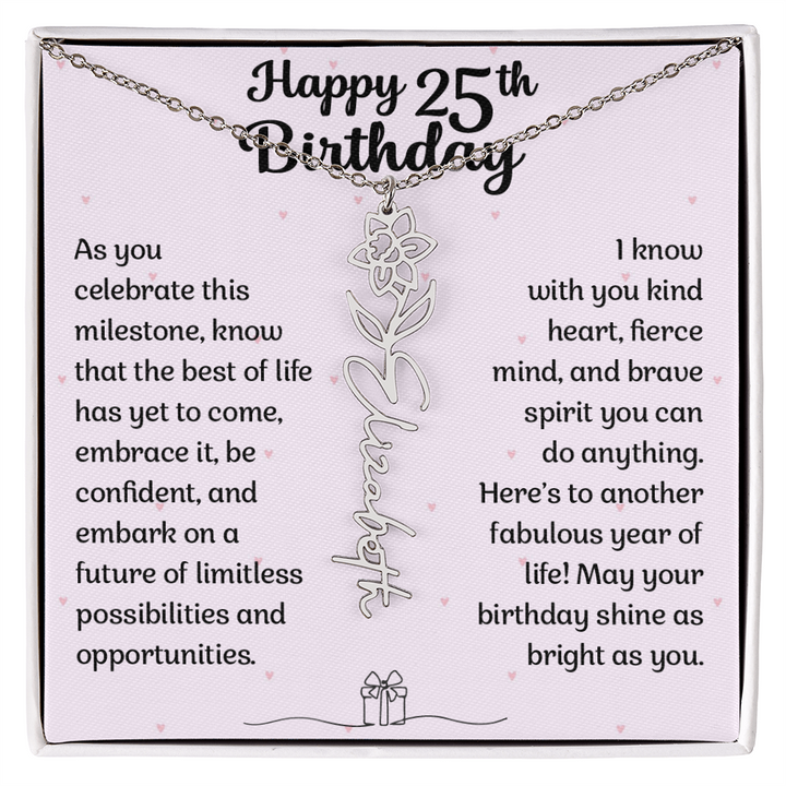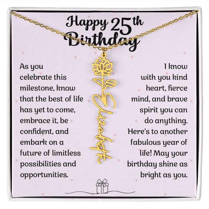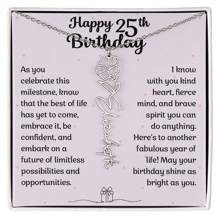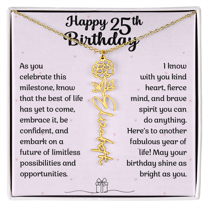 Personalize your style with a delicate Flower Name Necklace for 25th birthday – a unique floral-inspired gift that blends beauty and individuality perfectly.