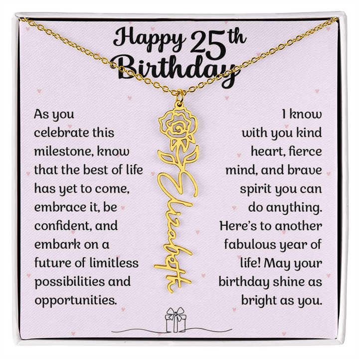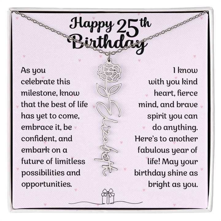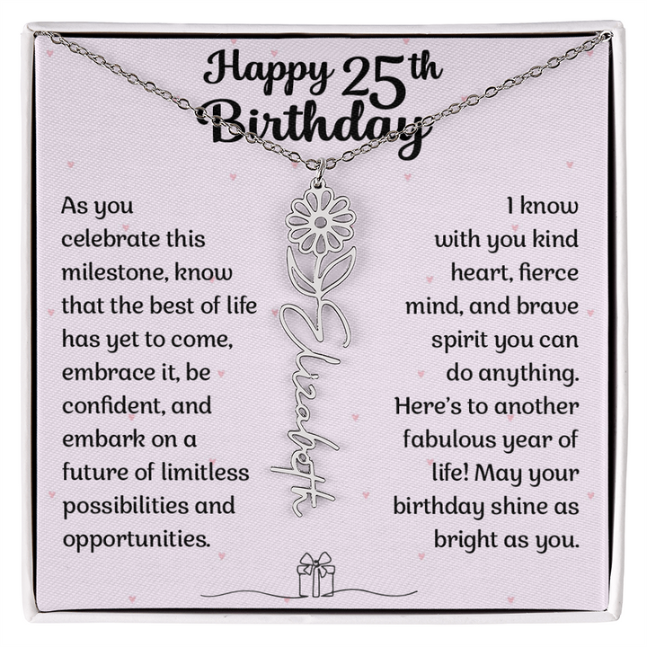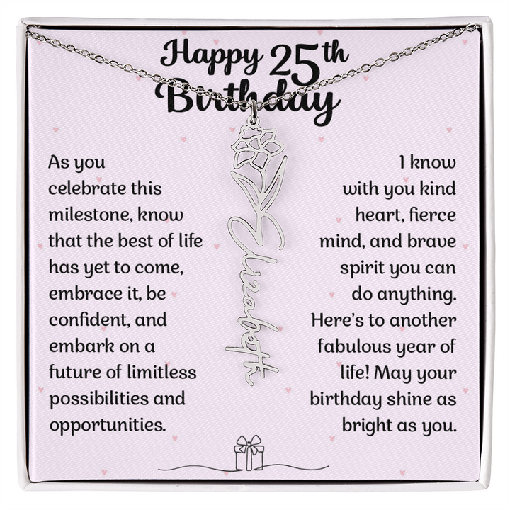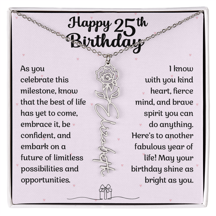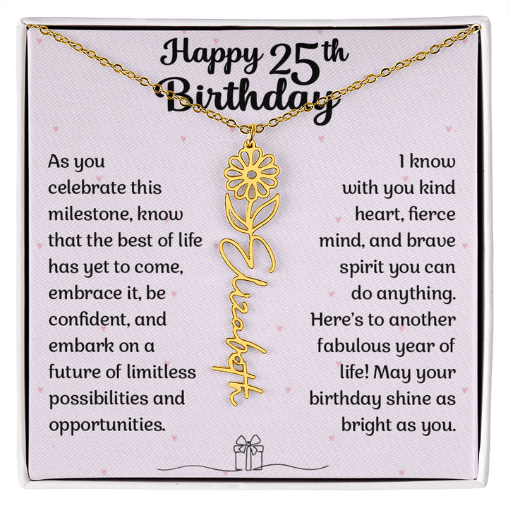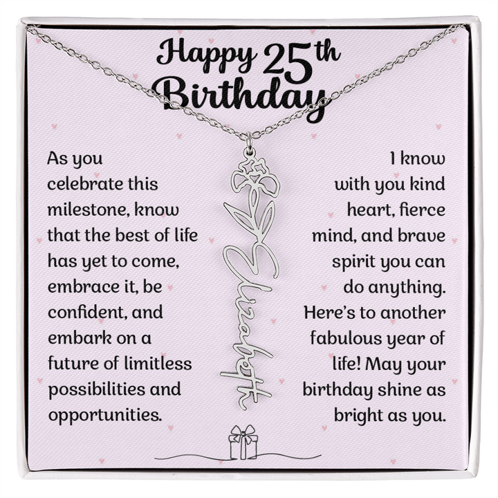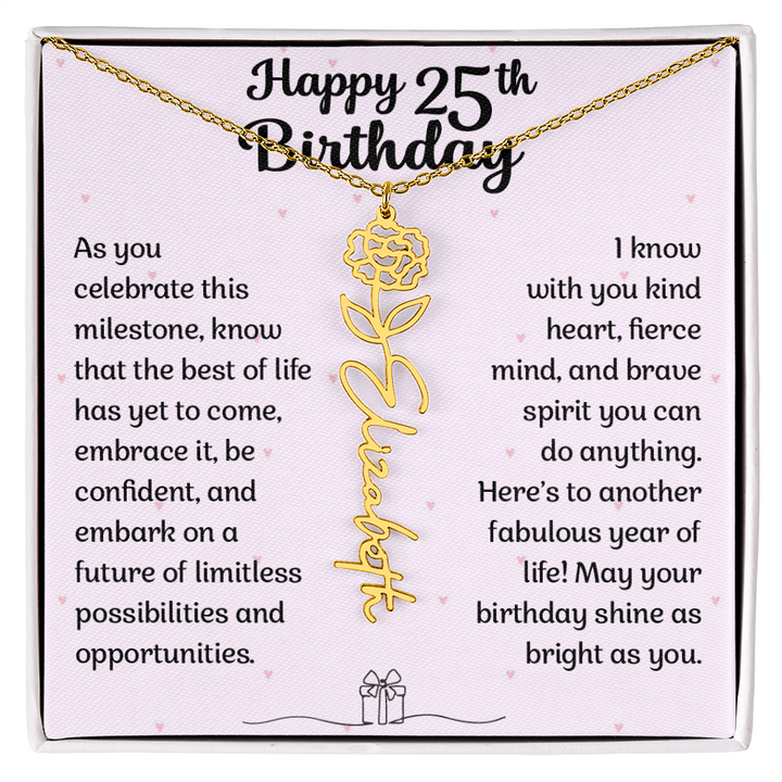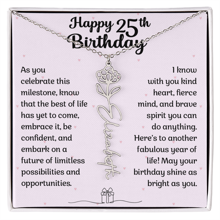 Personalize your style with a delicate Flower Name Necklace for 25th birthday – a unique floral-inspired gift that blends beauty and individuality perfectly.