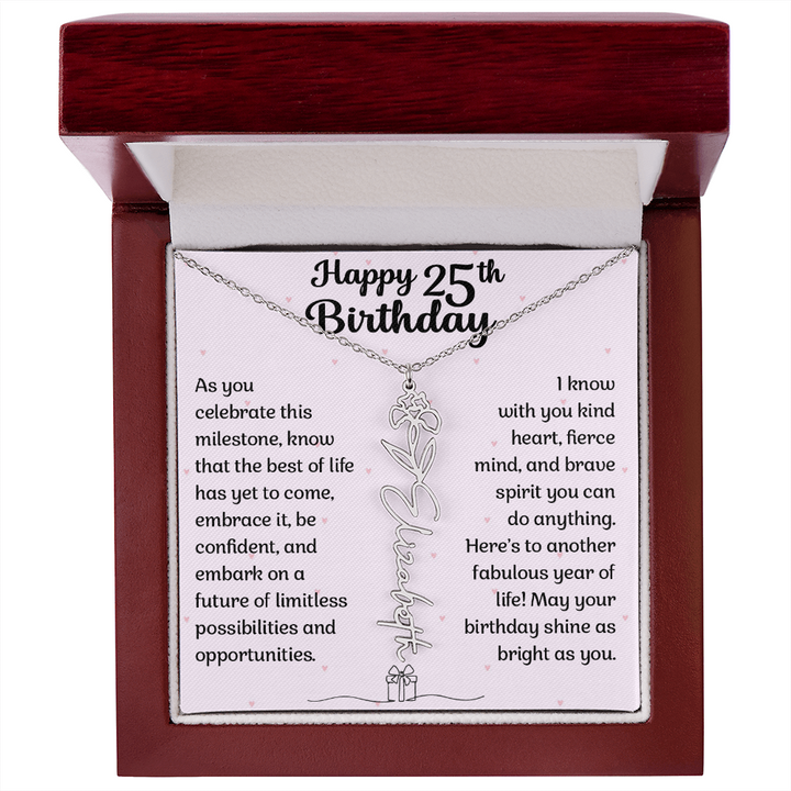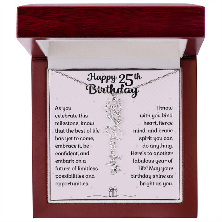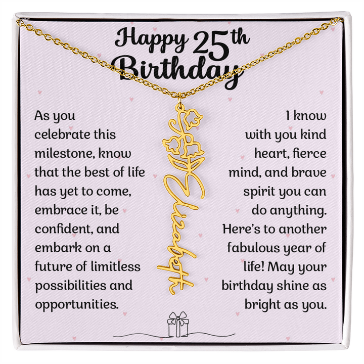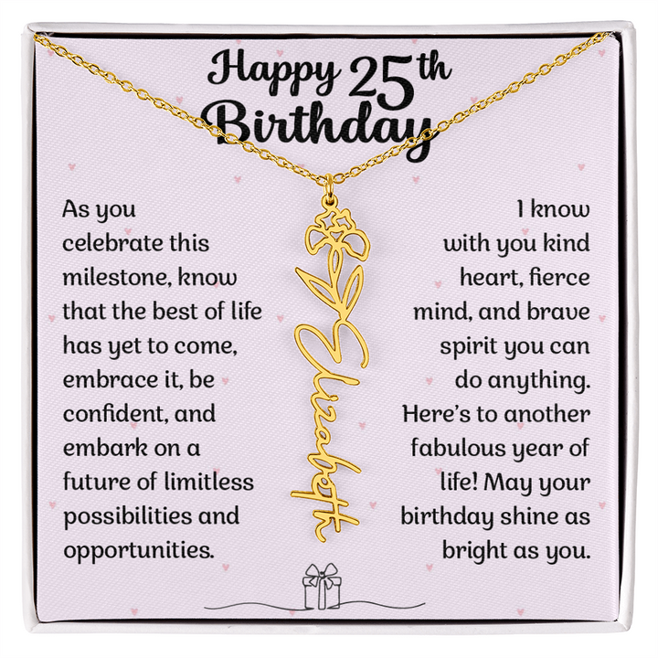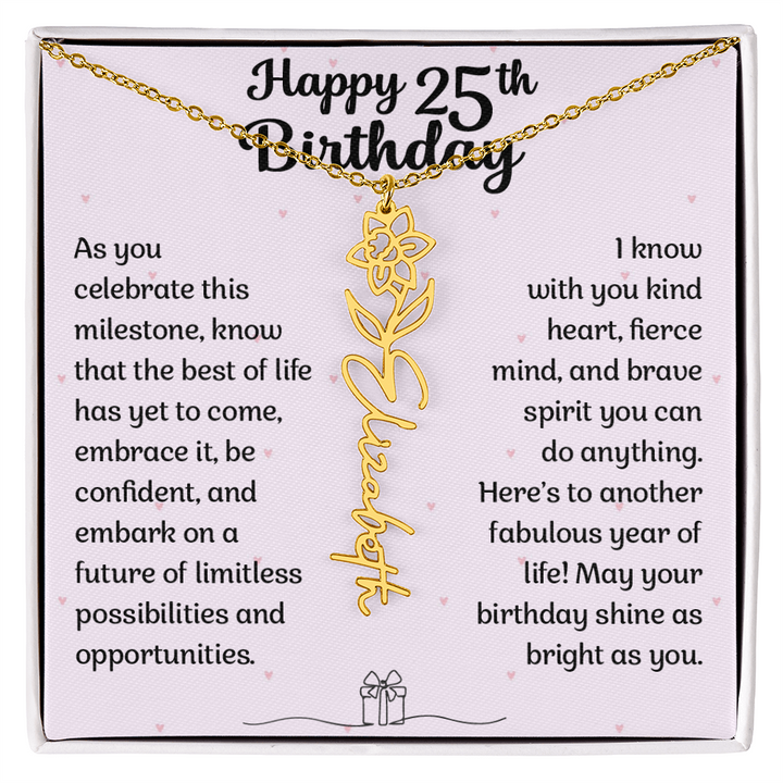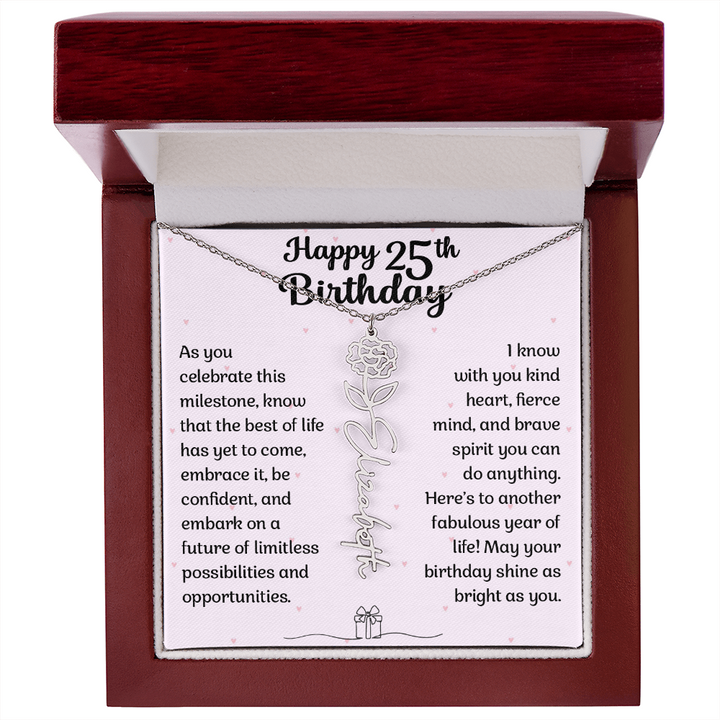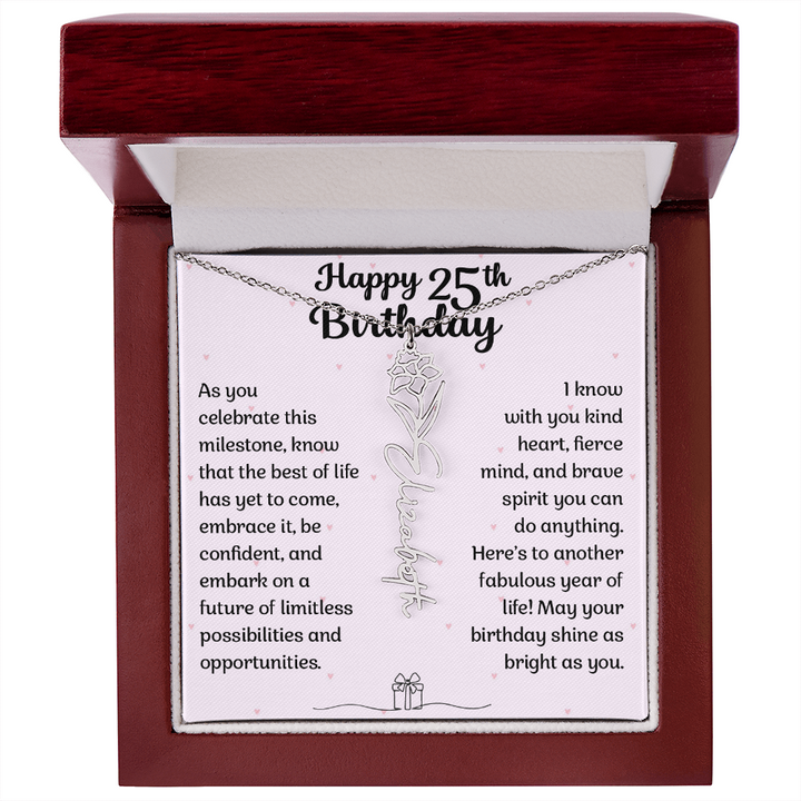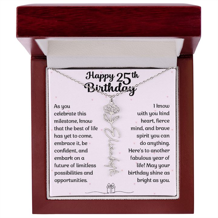 Personalize your style with a delicate Flower Name Necklace for 25th birthday – a unique floral-inspired gift that blends beauty and individuality perfectly.