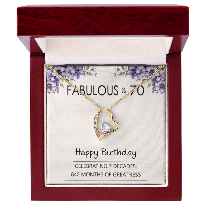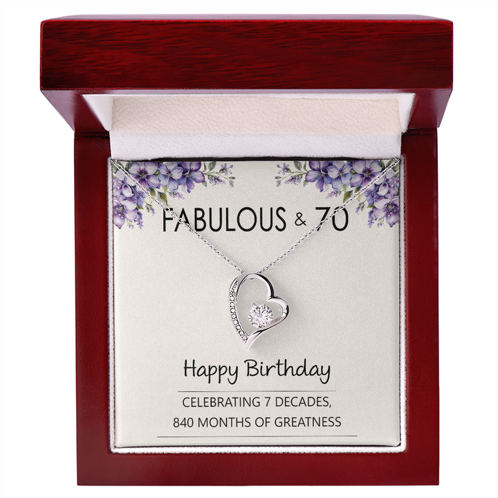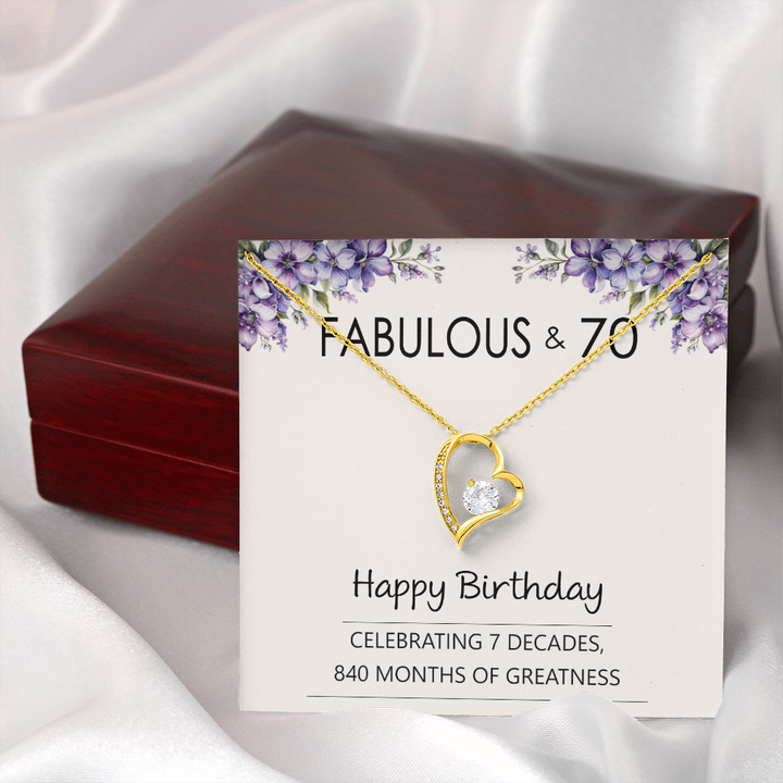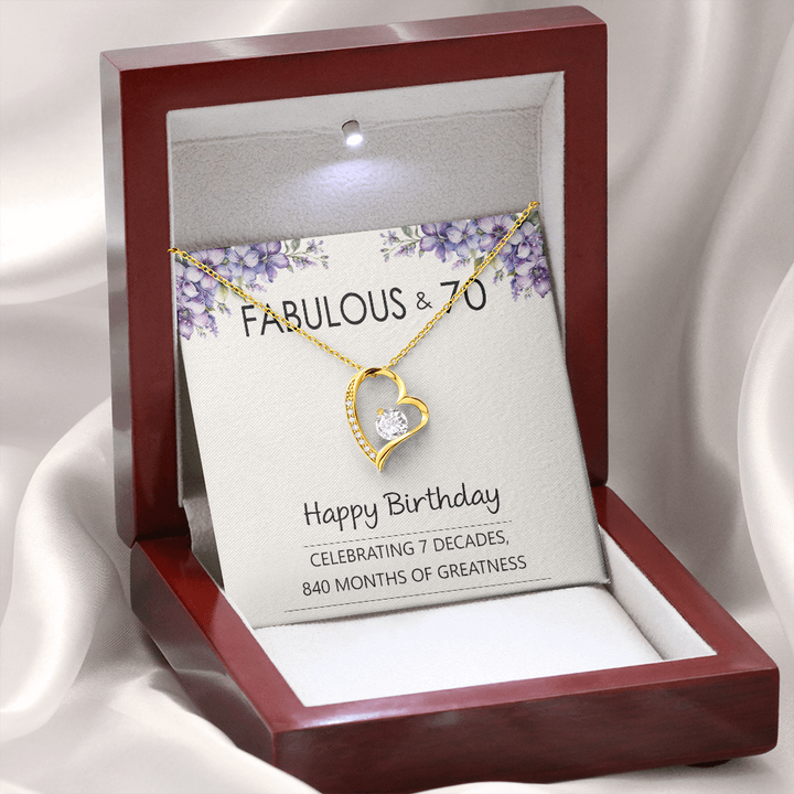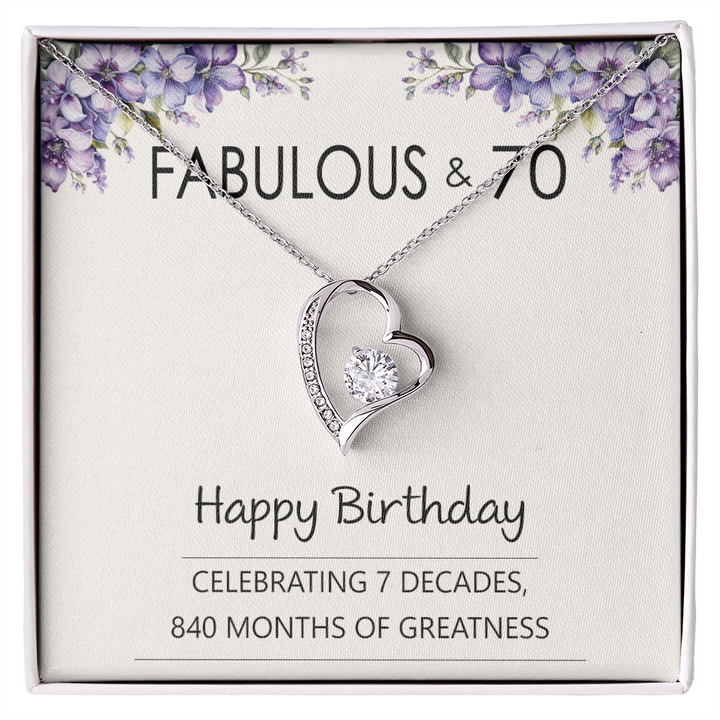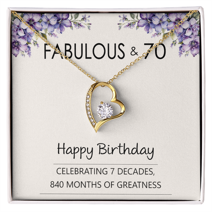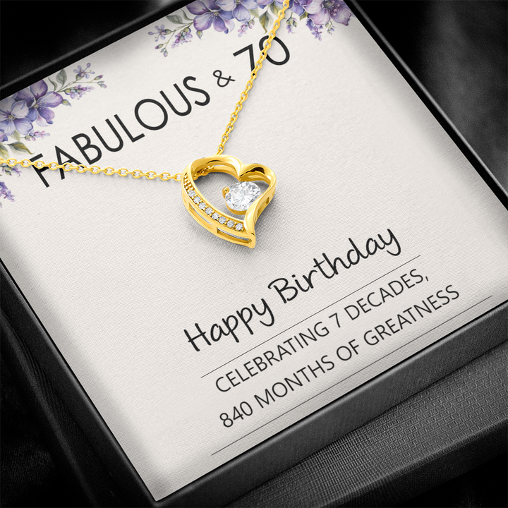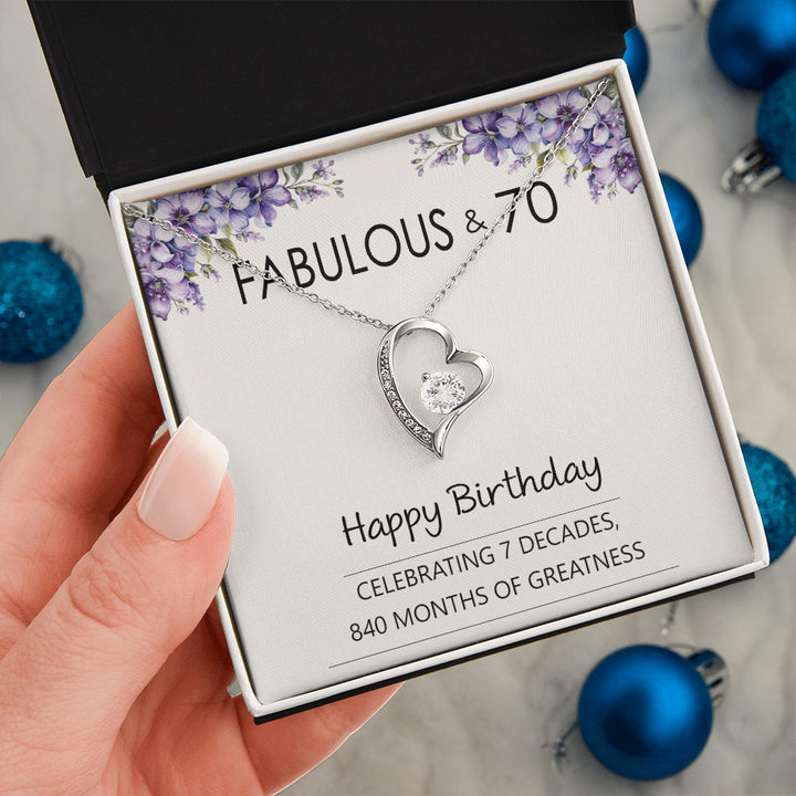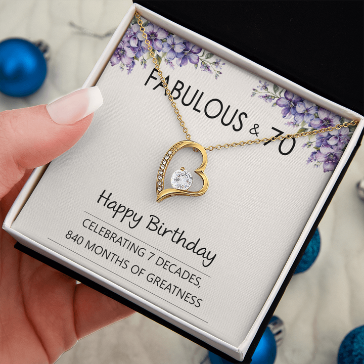 Celebrate her 70th birthday with the Forever Love Necklace – a meaningful gift that represents a lifetime of love, grace, and cherished memories.