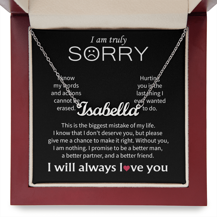 This stylish necklace features a cursive name design suspended on an 16”-18” adjustable cable chain, making it both personal and beautiful! Your necklace will be custom made upon ordering in the name or word of your choice, up to 11 characters. It's a gift that they will surely want to keep close to their heart forever!