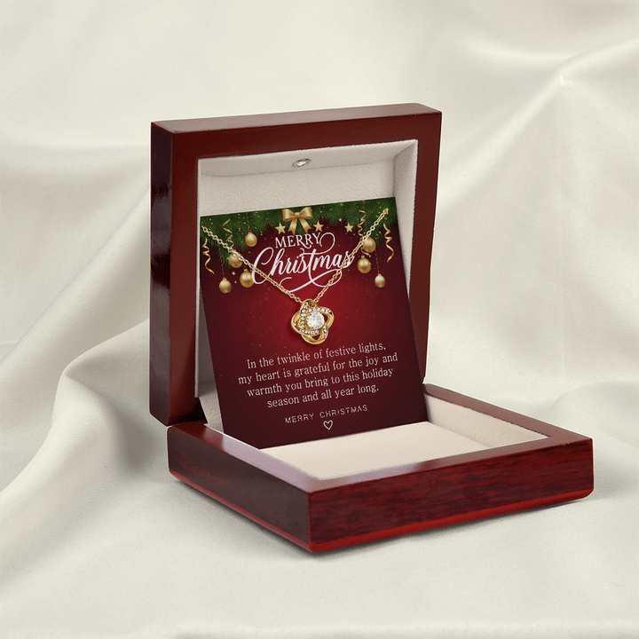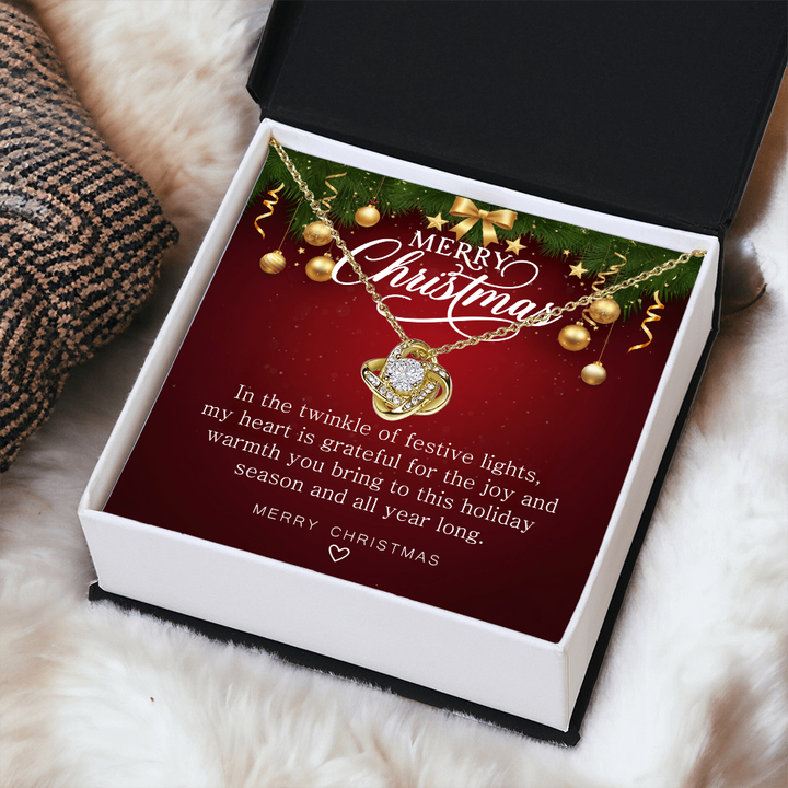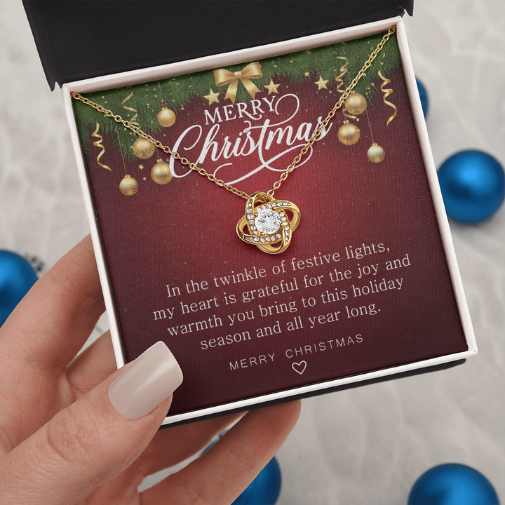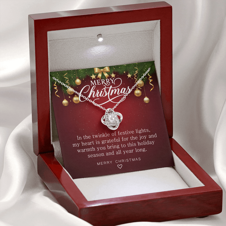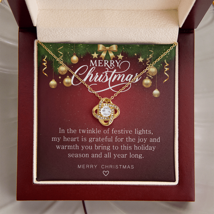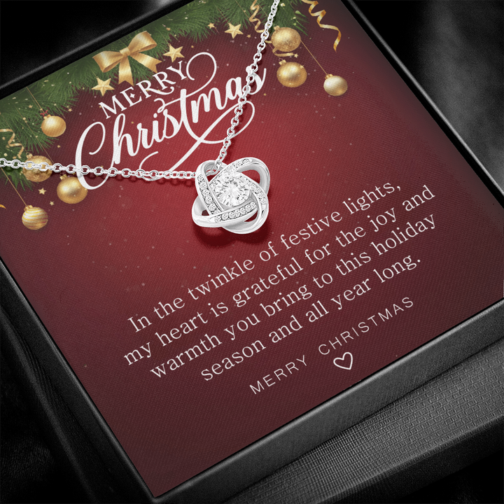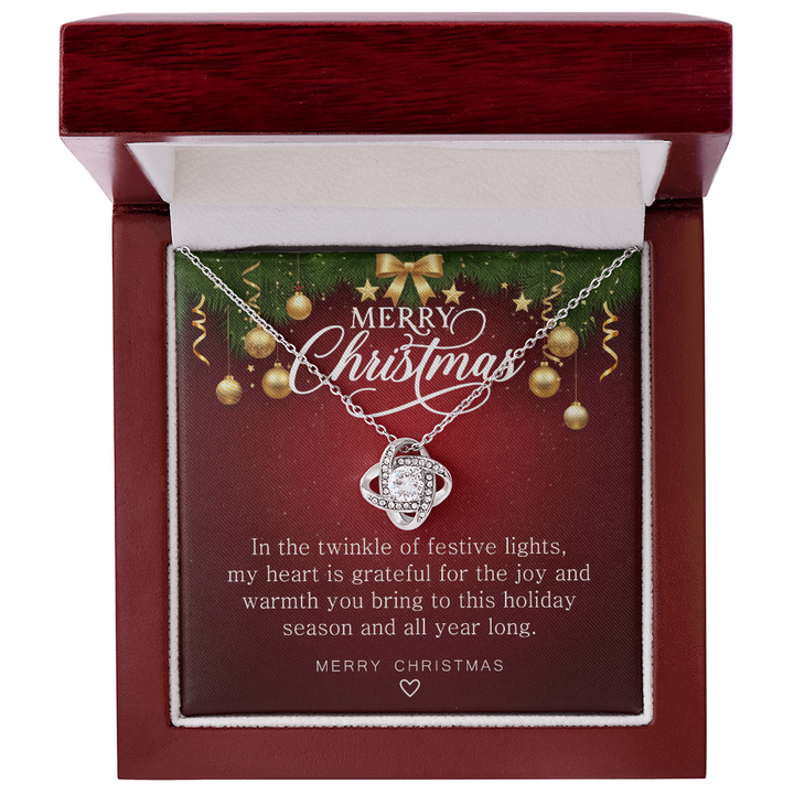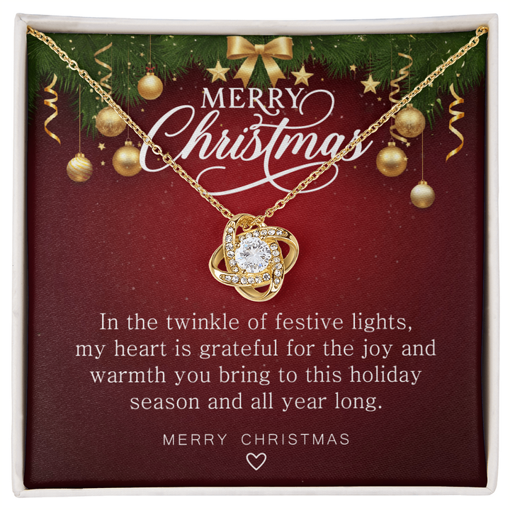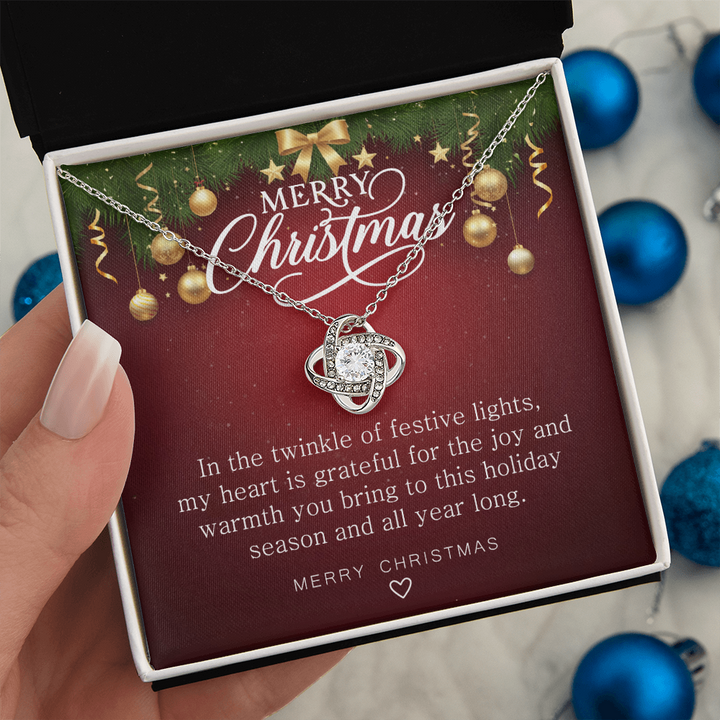 Wrap your holiday wishes in elegance with the Love Knot Necklace – a dazzling reminder of love and unity, crafted to bring sparkle and joy this Christmas.