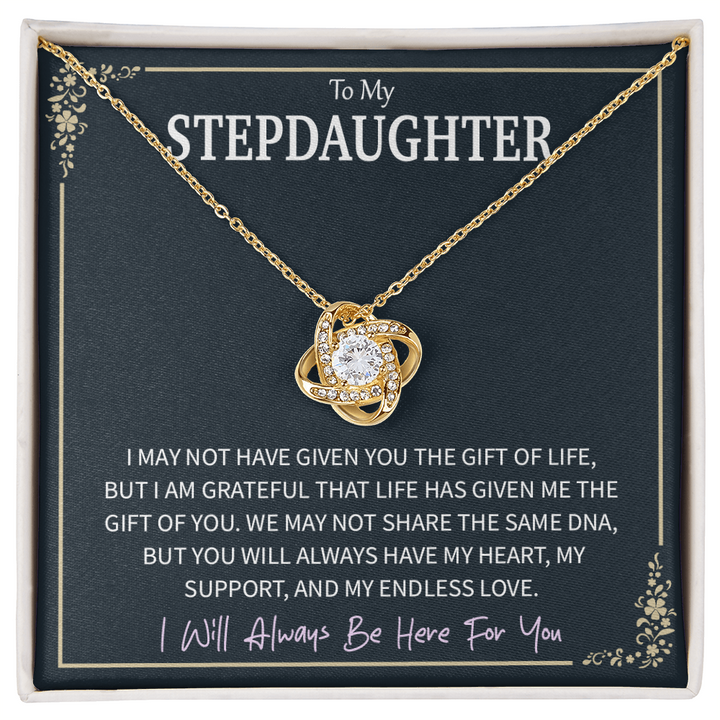 Meaningful gifts for your bonus daughter—Love Knot necklaces that shine with love, gratitude, and the special bond you’ll cherish forever.