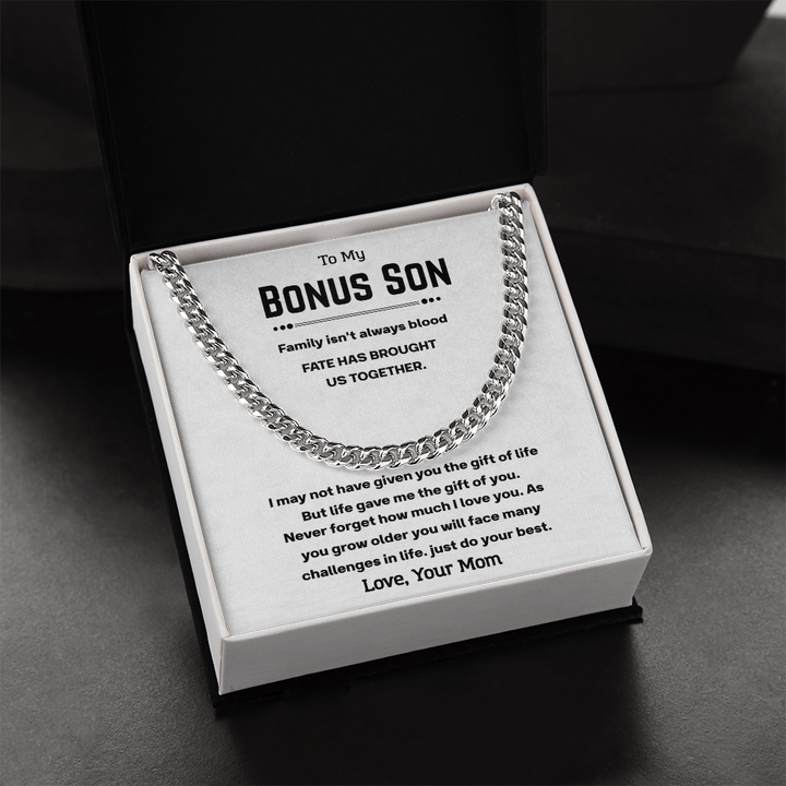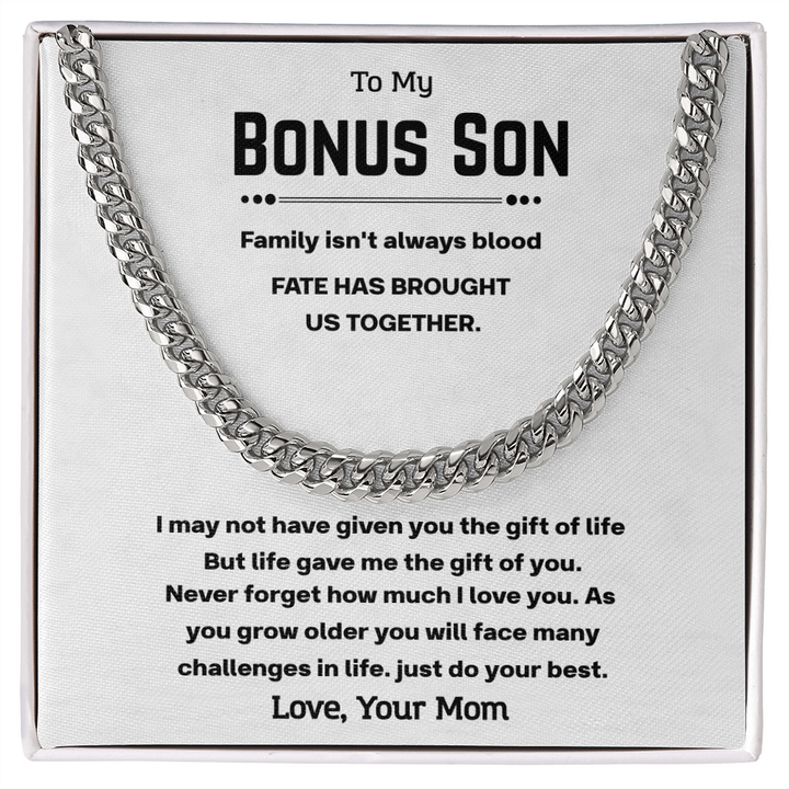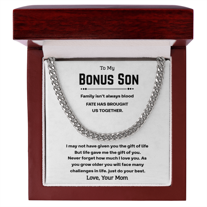 Stylish Cuban Link Necklace for stepson, great graduation, birthday, or milestone gift to show love and support.